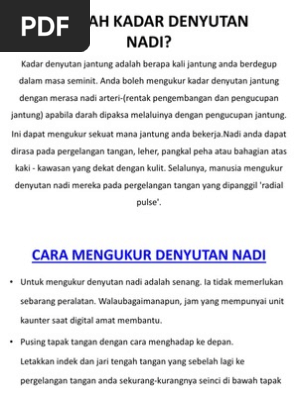 You can change your ad preferences anytime. Mengetahui kadar denyutan anda boleh membantu anda menilai. Kemudian, berapa bilangan denyutan normal yang ideal? Cara pengiraan kadar nadi latihan. Kadar nadi bergantung kepada kadar denyutan jantung, menyebabkan turun naik di dinding arteri.