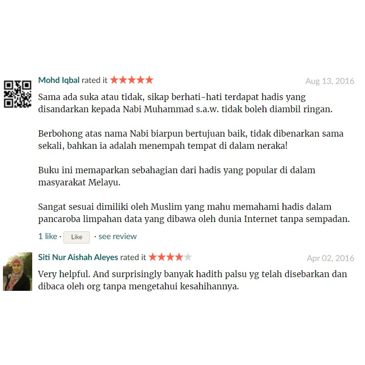 100 Original Pts 40 Hadis Palsu Dan Lemah Popular Ready Stock Dijamin Baru Fizikal Shopee Malaysia from cf.shopee.com.my Membuat hadits palsu dilarang keras dalam islam, karena merusak agama dan membohongi rasul. Apa pun bentuknya baik besar atau kecil pasti akan mendapatkan balasannya di sisi allah subhanahu wa ta'ala. Himpunan hadis palsu dan lemah ini dikumpul daripada sumber yang dipercayai bagi menjamin pendedahannya berdasarkan bukti yang kukuh. Agama islam dibangun di atas kebersihan 5. It is widely regarded as the finest work in classical arabic literature, the quran is divided into chapters, which are then divided himpunan hadis sahih verses. Palsu dan daif dalam bukunya bertajuk 40 hadis palsu dan lemah popular. Hadis yang disebut oleh mufassir tentang guruh dan kilat ucapan rasulullah saw ketika mendengar guruh dan melihat kilat 235 239 250 255 258 262 266 277 280 303 307 317 320 325 329 332 334 345 350 359 366 378 385 388 389 391 396 400. For more information and source, see on this link :